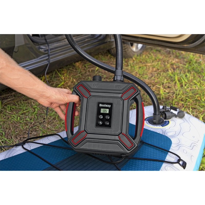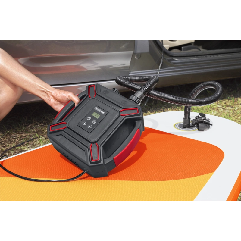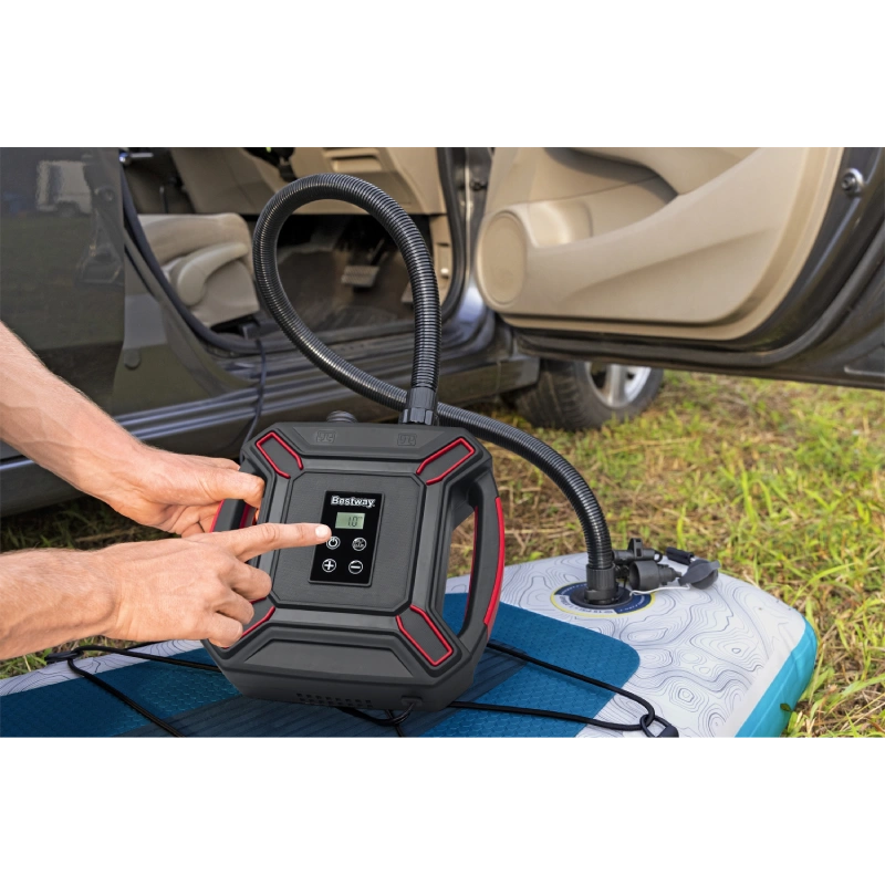 پمپ باد پرتوان فندکی بست وی مدل 62265 یکی از بهترین انتخابها برای افرادی است که به دنبال یک پمپ باد قوی و کارآمد برای پر کردن سریع و آسان انواع محصولات بادی هستند. این پمپ باد با ولتاژ 12 ولت از فندکی خودرو تغذیه میشود، به همین دلیل استفاده از آن در سفرها، کمپینگها و در مواقعی که دسترسی به برق شهری ندارید، بسیار راحت است. با میزان تولید باد 300 لیتر در دقیقه (L/MIN)، این پمپ میتواند انواع محصولات بادی شما را در مدت زمان کوتاهی پر کند.