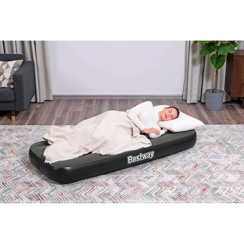 تشک بادی یک نفره Bestway مدل 6713K از مواد با کیفیت بالا ساخته شده که به آن دوام و راحتی بیشتری میبخشد. ساختار این تشک بادی شامل چندین لایه مقاوم و ارگونومیک است که به تجربه خواب شما کمک میکند: