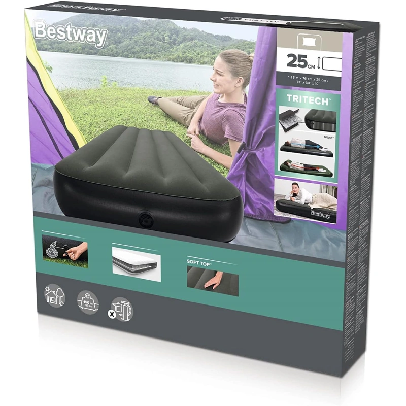 تشک بادی یک نفره Bestway مدل 6713K با ویژگیهایی مانند راحتی بالا، جنس مقاوم، قابلیت حمل آسان و طراحی ارگونومیک، یک انتخاب عالی برای استفاده در سفر، کمپینگ یا حتی در خانه است. این تشک با تحمل وزن مناسب، رویه ضد تعریق، و لایههای مقاوم Tritech، تجربه خواب راحتی را برای شما فراهم میکند. با خدمات پس از فروش 10 ساله و پشتیبانی فنی، این تشک بادی میتواند سالها به شما خدمت کند.