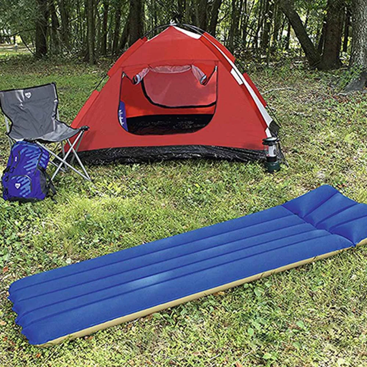 - تشک بادی کمپینگ و مسافرتی: این نوع تشکها برای استفاده در چادر مسافرتی، داخل کیسهخواب یا اقامت در ویلا و هتل کاربرد دارند. اندازههای یکنفره و دونفره با ضخامتهای مختلف از این مدلها موجود است. تشکهای مسافرتی معمولا سطحی موجدار دارند تا فشار کمتری به بدن وارد شود و خوابی راحت حتی روی زمین سخت فراهم گردد. برخی مدلهای پیشرفتهتر دارای لایههای فومی داخلی یا قابلیت تنظیم سفتی با کم و زیاد کردن باد هستند. هنگام انتخاب تشک مسافرتی، به عکس تشک بادی در کاتالوگ محصول دقت کنید تا با طرح و ابعاد آن برای نیاز خود آشنا شوید. تصاویر محصول به شما نشان میدهد که تشک در حالت باد شده چقدر ارتفاع دارد و چگونه فضای خواب را فراهم میکند. این اطلاعات از طریق مشاهده عکس تشک بادی میتواند به انتخاب بهتر شما کمک کند.