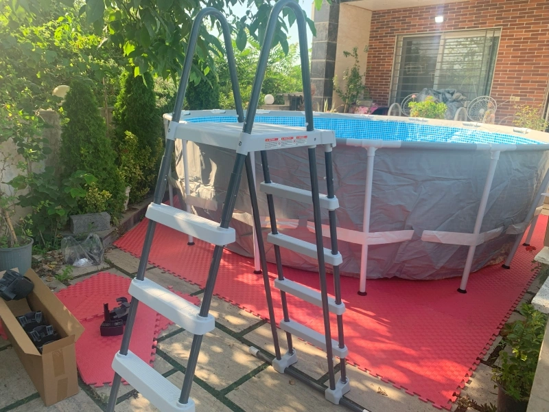 نردبان حرفهای دو طرفه: نردبانی که به راحتی قابل جدا شدن و جابجایی است و به ایمنی بیشتر در حین ورود و خروج از استخر کمک میکند.