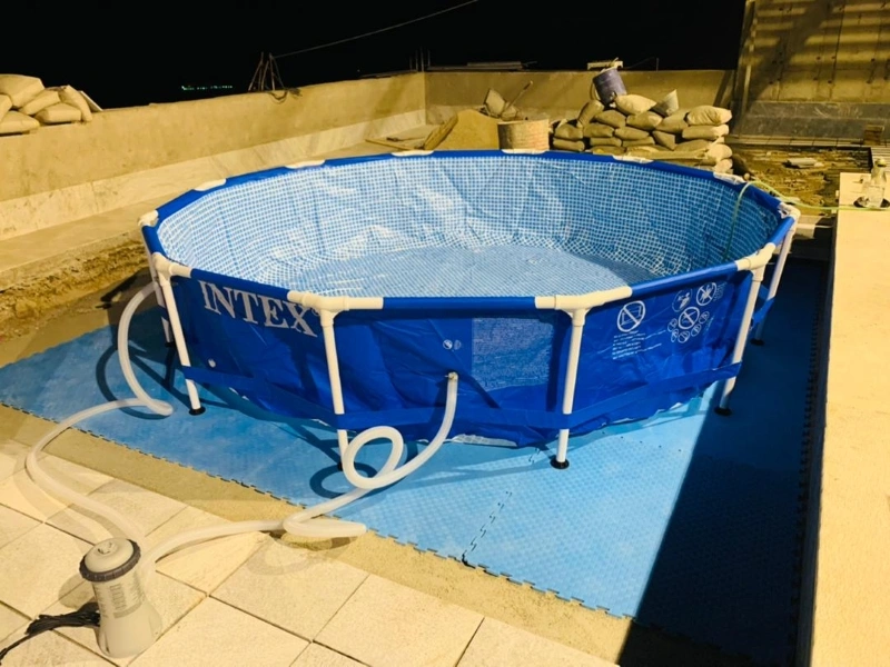 شما می توانید این استخر را روی سطح زمین و یا داخل چاله حفر شده نصب کنید و دور آن را با چوب و لمینت بپوشانید. روی دیواره استخر، محل ورود و خروج شیلنگ پمپ تصفیه تعبیه شده و امکان نصب پمپ را برای شما فراهم نموده است.