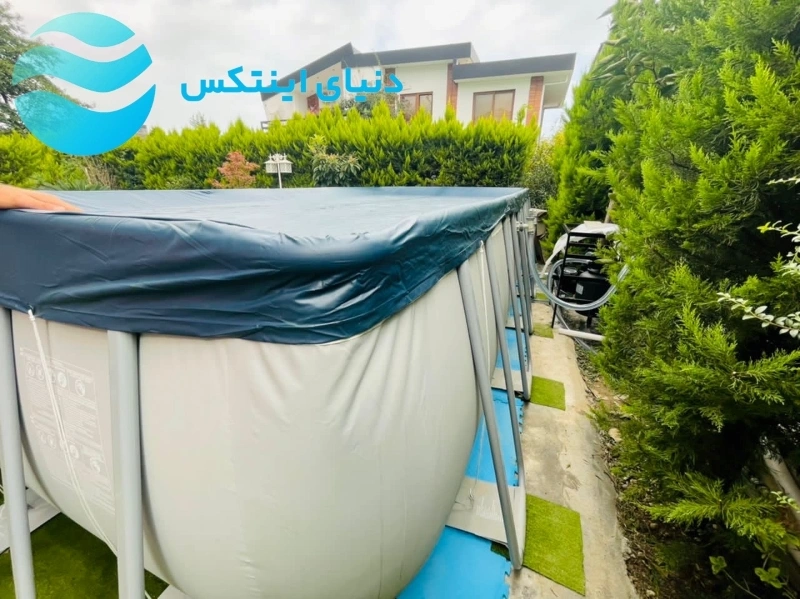 شما میتوانید این استخر پیش ساخته را روی سطح زمین صاف و بدون شیب، نصب و پس از استفاده جمع اوری نمایید. ولی اگر مایل به نصب دائمی استخر در داخل زمین هستید، از طریق هماهنگی با کارشناس نصب نمایندگی دنیای اینتکس، ابعاد مشخصی را گود برداری کنید و پس از نصب استخر اطراف آن را با چوب و لمینت دیزاین کنید و از آن لذت ببرید. عملیات نصب و راه اندازی این استخر با توجه به دفترچه راهنما به راحتی قابل اجرا می باشد، ولی برای آموزش نصب و جمع اوری پمپ تصفیه و شیوه نگهداری و جلوگیری از آسیب های احتمالی حین نصب استخر، توصیه می شود برای بار اول از نصاب های ماهر شرکت استفاده کنید و از یک سال خدمات رایگان پس از فروش بهره مند شوید.