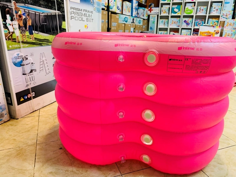نصب آسان: برای راهاندازی این وان بادی، تنها نیاز به یک پمپ باد دارید (پمپ باد برقی یا دستی قابل استفاده است). دریچههای ورودی هوا را باز کنید و وان را باد کنید.